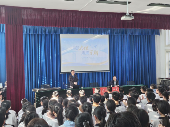 宣讲会上,樊利民面向范亭中学200余名高三学子开展招生宣讲。通过播放招生宣传视频、展示“逐梦太理 未来可期”主题宣讲PPT,全方位展现了太原理工大学的办学特色与学科优势,详细解读了学校的办学实力、院士领衔的师资团队、重大教学科研成果,系统阐述了“新工科”背景下的创新人才培养模式、实践教学体系以及多元化深造机会,帮助考生明晰未来学业与发展规划。